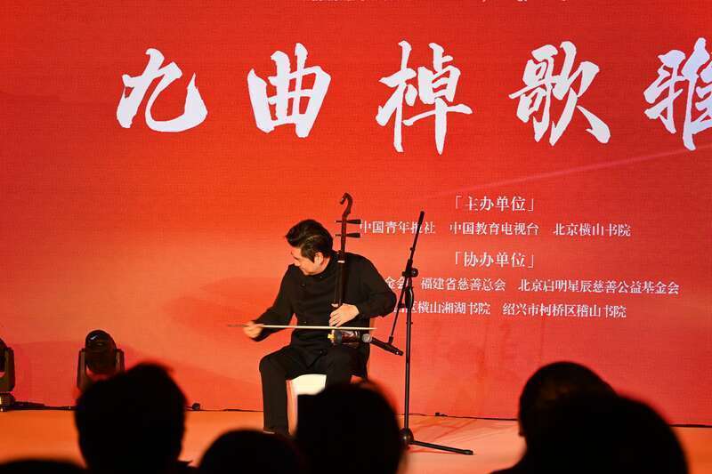 11月22日,福建省武夷山市,雅集“九曲棹歌”上,著名二胡演奏家、天津音乐学院民乐系主任陈军演奏二胡曲目《狂野飞骏图》。中青报·中青网见习记者 蒋欣雨/摄