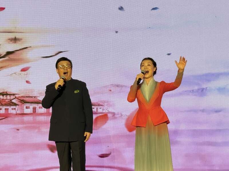 11月22日,福建省武夷山市,雅集“九曲棹歌”上,著名女高音歌唱家吕薇与著名男高音歌唱家吕继宏合唱《春风十万里》。中青报·中青网记者 姜蕾/摄