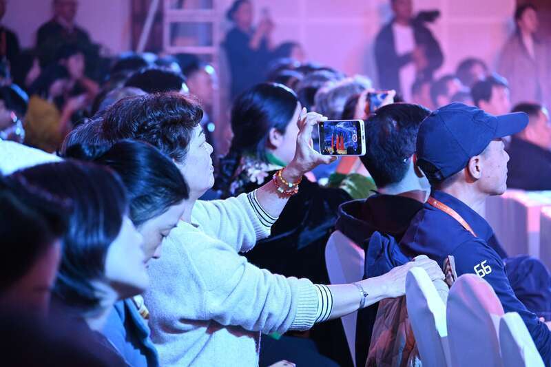 11月22日,福建省武夷山市,雅集“九曲棹歌”上,观众观看黑鸭子组合演唱并拍视频留念。中青报·中青网见习记者 蒋欣雨/摄