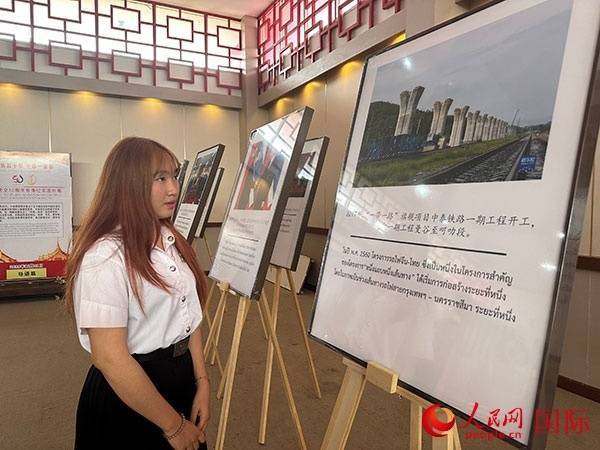 泰国学生观看中泰建交50周年图片展。人民网记者 孙广勇摄