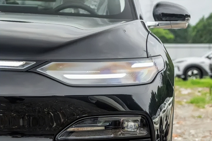 零跑C11的外观设计给人一种稳重却不失现代感的印象。从正面来看,它采用了新能源车常见的封闭式前脸设计,没有传统的进气格栅,整体呈现出一种简洁而又有层次的视觉效果。中间的零跑品牌标识充当了车头的视觉中心,两侧的大灯组造型简洁规整,不带有过多的装饰,而上方的贯穿式日行灯在点亮后起到了很好的视觉连接作用,使得车头看起来干净整洁。整体车头给人的感觉是并不厚重的,它通过黑色和车身同色区域的巧妙搭配,让车头看上去既精致又不显得臃肿。在驾驶时,这种设计的好处也很明显,特别是在狭窄的街道或者停车时,车头视野较为开阔,可以轻松判断车身的边界。