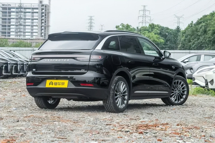 从侧面来看,零跑C11的车身比例非常协调,汽车的尺寸为4780x1905x1658mm,轴距为2930mm,这些数据都指向一台标准的中型SUV。车身线条简洁,腰线从前翼子板延伸至尾灯位置,搭配隐藏式门把手,使得车身更显流线型。车轮的尺寸适中,胎侧比在舒适与支撑之间取得了良好的平衡,保证了车辆在日常驾驶中的平稳性与舒适感。而尾部则延续了简洁的设计理念,贯穿式尾灯的灯带贯穿整个尾部,夜间的识别度也很高。