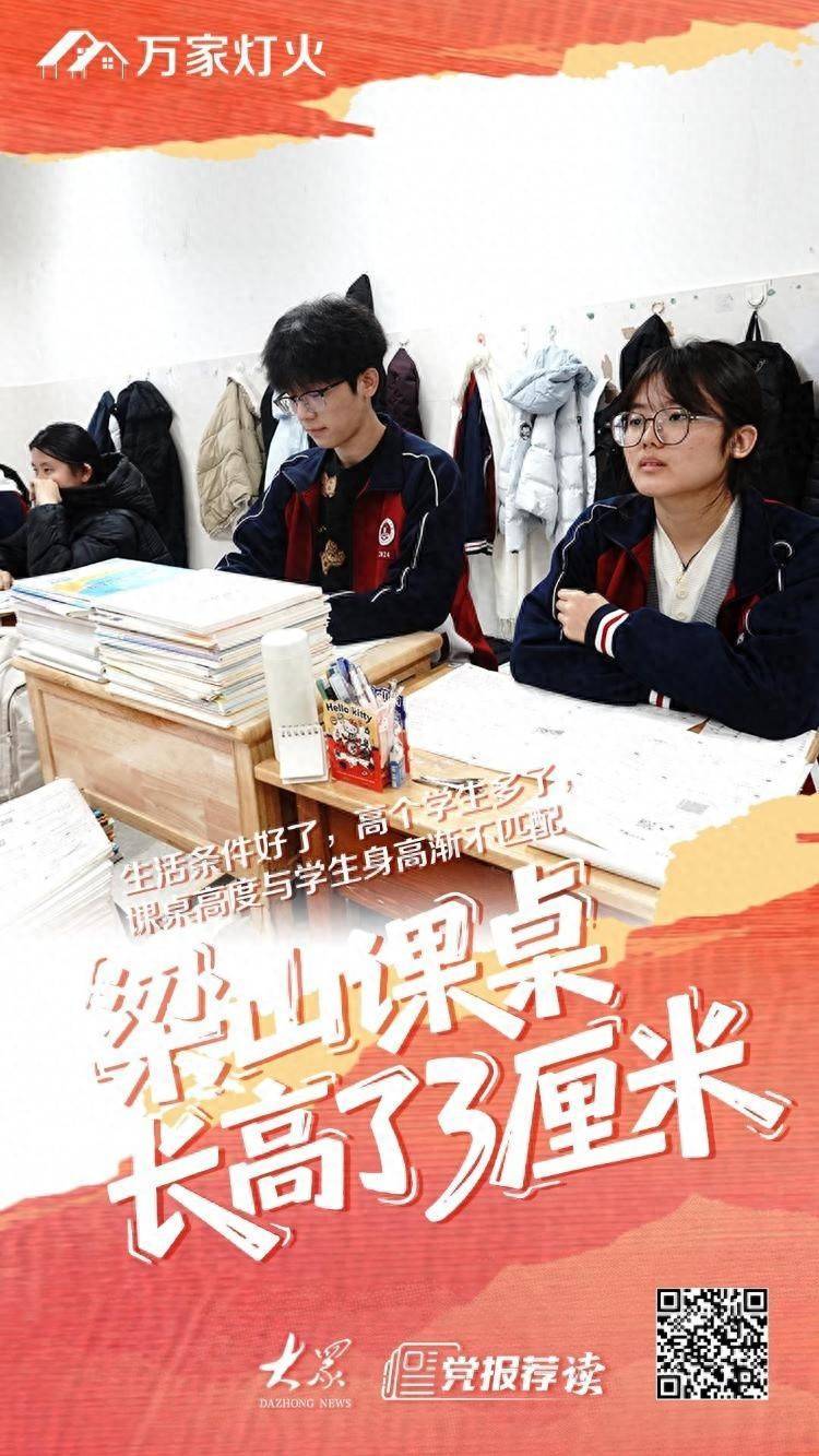“这不起眼的3厘米,让孩子们挺直了腰板,也让教育更有温度。”学生家长马德光说,儿子马文远上初三时,身高就达到了181厘米,今年上了高二,学校更换高课桌后孩子的身姿不知不觉挺拔了许多。