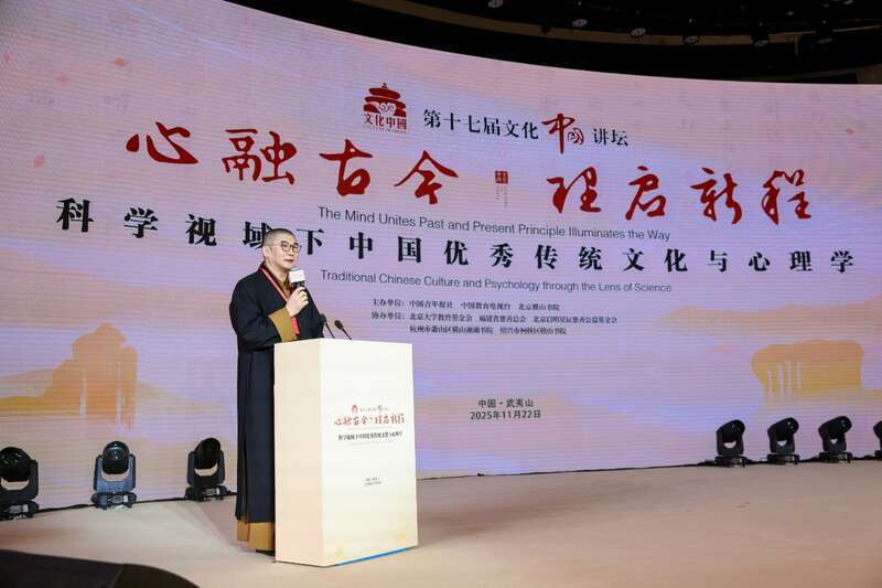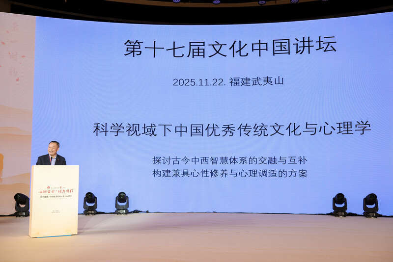 中国青年报客户端武夷山11月22日电(中青报·中青网记者 余冰玥)今天,第十七届文化中国讲坛在福建武夷山举办。本届讲坛主题为“心融古今 理启新程——科学视域下中国优秀传统文化与心理学”,聚焦中华优秀传统文化中心学与理学的深厚智慧,与现代心理学展开深度对话,在科学视域下推动古今思想的融会贯通。多位文化大家、知名学者登坛开讲。